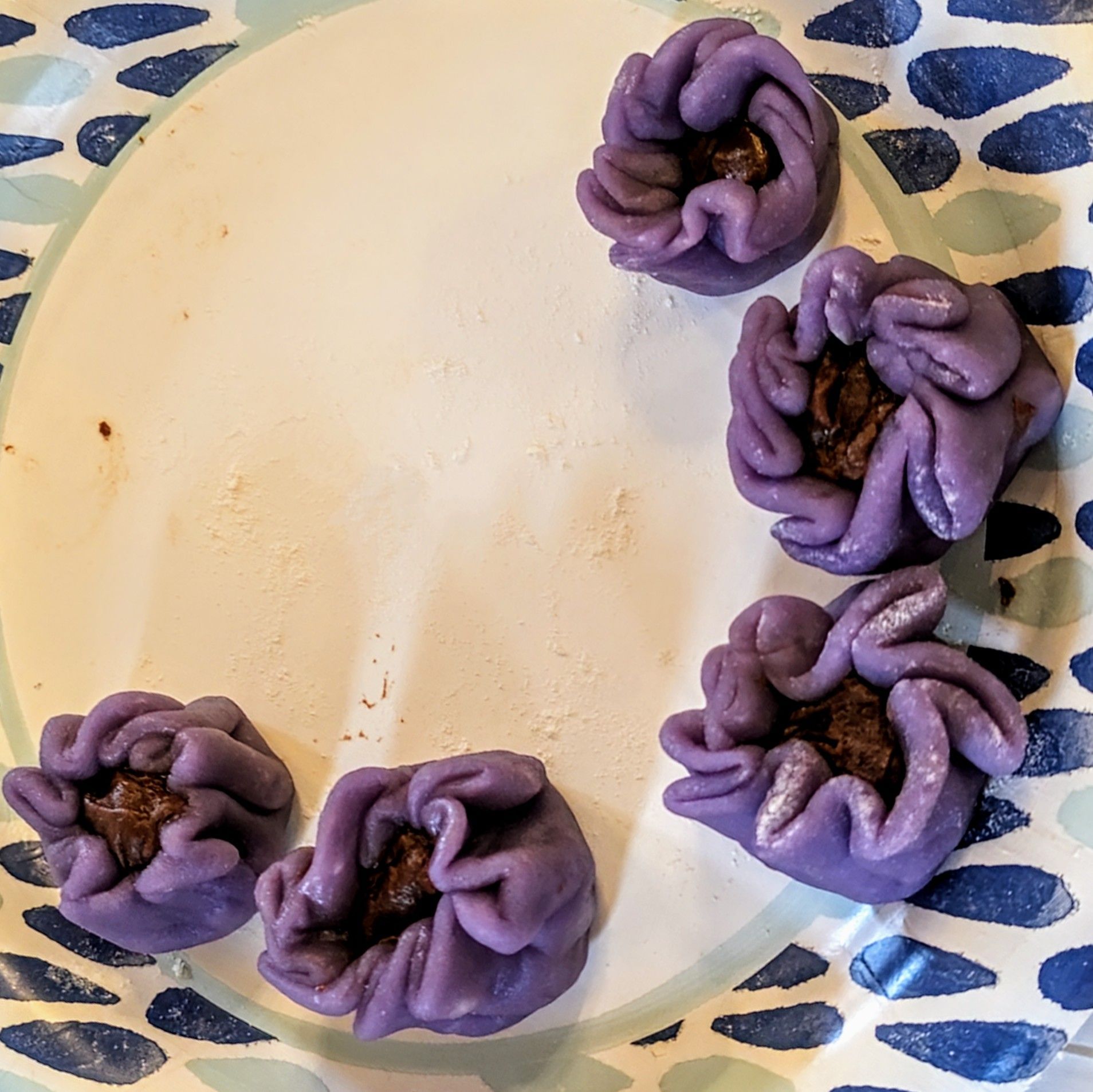 Rainbow rose dumplings for Pride Month. A challenge for a fifth grade class to make enough dumplings for their entire elementary school. (They did!). Dumpling making for charity.